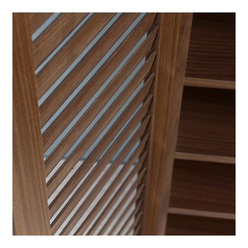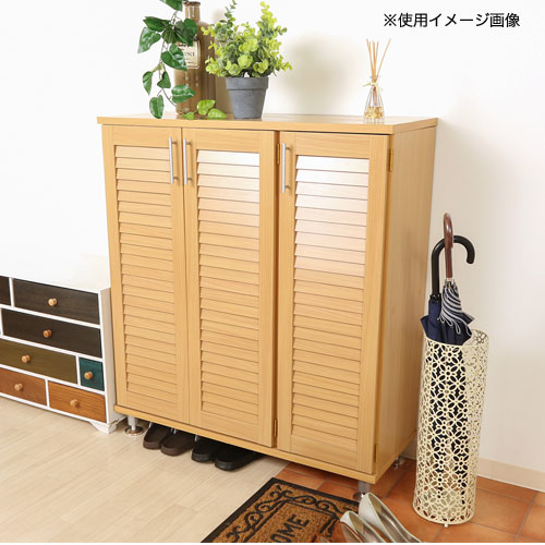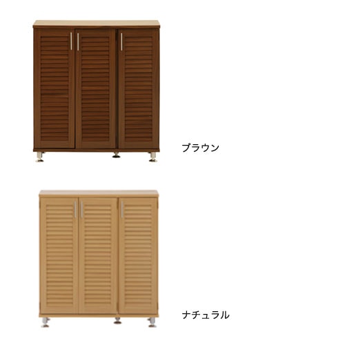 | シンプルデザインのシューズボックスです。 ルーバー扉が玄関をおしゃれに演出します。 お部屋の雰囲気に合わせてカラーはブラウン、ナチュラルの2色からお選びいただけます。 |