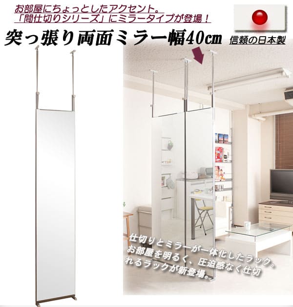 - 突っ張りミラー 両面 幅40cm スタンドミラー パーテーション nj-0158