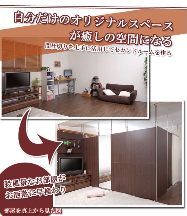 | お部屋にちょっとしたアクセント。「間仕切りシリーズ」にミラータイプが登場! お部屋を仕切るだけでなくミラーとして両サイドから使える優れもの。 ミラーで仕切っているのでお部屋に暗さを感じません。 他の突っ張りシリーズと組合わせてキッチンとリビングの仕切りなどにも活躍します。 |