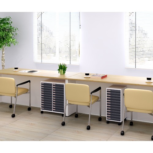 | たくさんの書類を上手に収納できるレターケース。 差込式のインデックスカードで引き出しを分かりやすく分類できます。 引き出しのサイズはA4用紙より少し余裕があるサイズでクリアファイルを綺麗に収納できます。 アジャスターとキャスターが標準装備されています。用途に合わせてご使用ください。 |