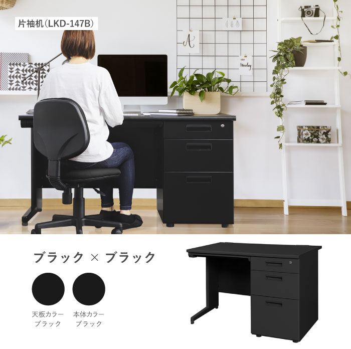 - オフィスデスク ブラック 片袖机 幅1000×奥行700mm ワークデスク LKD-107B