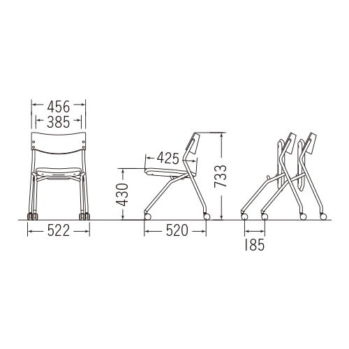 フレーム:直径22.2mmスチールパイプ・粉体塗装 背:成型合板 座:ポリプロピレン樹脂成型品、ウレタンフォーム 張地:ビニールレザー 直径50mm双輪キャスター付 ●ネスティング ●張地/抗菌・難燃 |