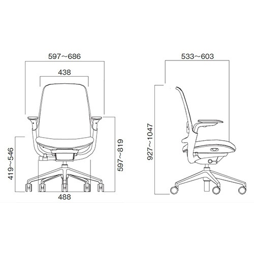 | サイズ | 外寸:幅597~686×奥行533~603×高さ927~1047(座面高419~546)mm 梱包サイズ:幅830×奥行760×高さ350mm 梱包重量:19kg |