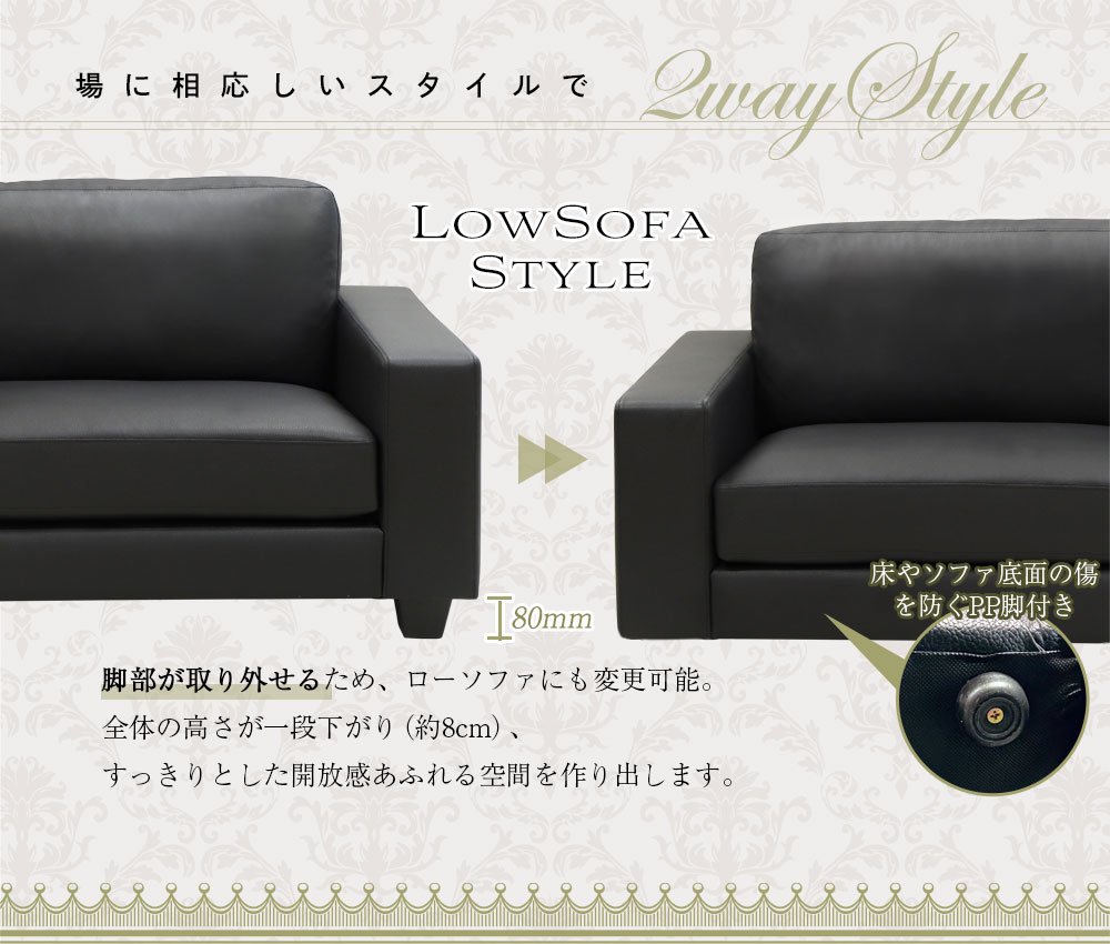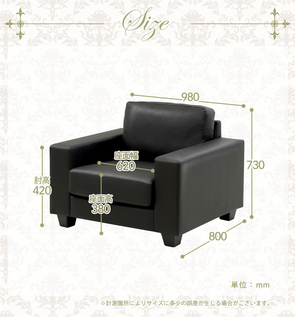 張地:合成皮革 裏地:ポリエステル100% 中材:ウレタンフォーム・ポケットコイル 脚部:ポリプロピレン |