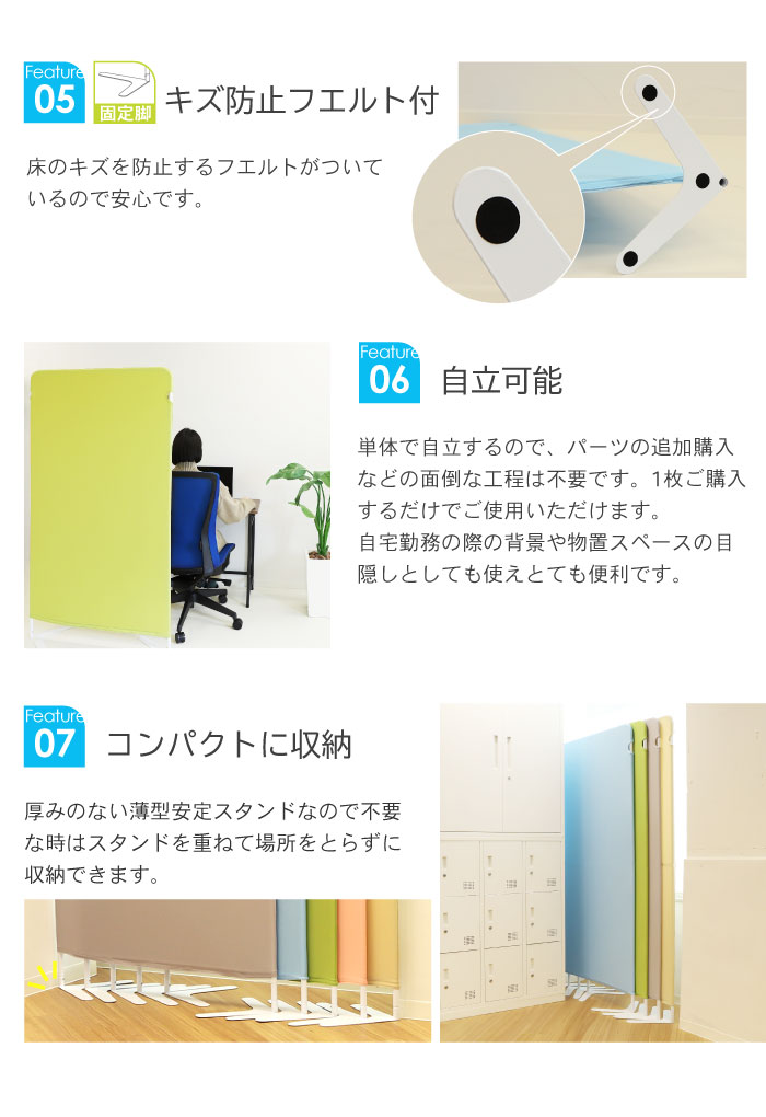 軽量で移動も楽々な布製のライトスクリーンです。 固定脚、キャスター脚の2種類の脚が付属しているので用途に応じて自由に取り替えてご使用頂けます。 布製なので気軽にお洗濯ができ、清潔にご使用できます。 一辺がマジックテープなので着脱も簡単です。 クロス素材で圧迫感を感じにくく、明るさを保ちながら視線はしっかりカット。透けたりすることはありません。 別売りでクロスカバーのみの購入も可能です。 |