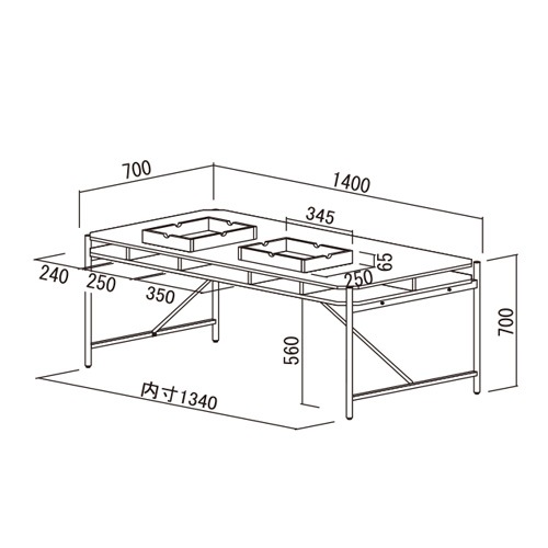 | サイズ | 外寸:幅1400×奥行700×高さ700mm 引き出し内寸:幅315×奥行220×高さ55mm 耐荷重:天板/30kg |