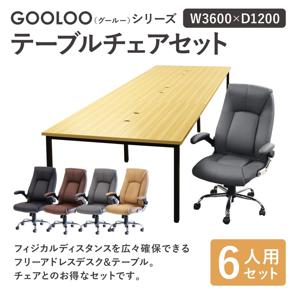 | フリーアドレスデスク&テーブル 幅3600mm | + ロイズチェア ×6 | NF-GFA-3612H-S1 |