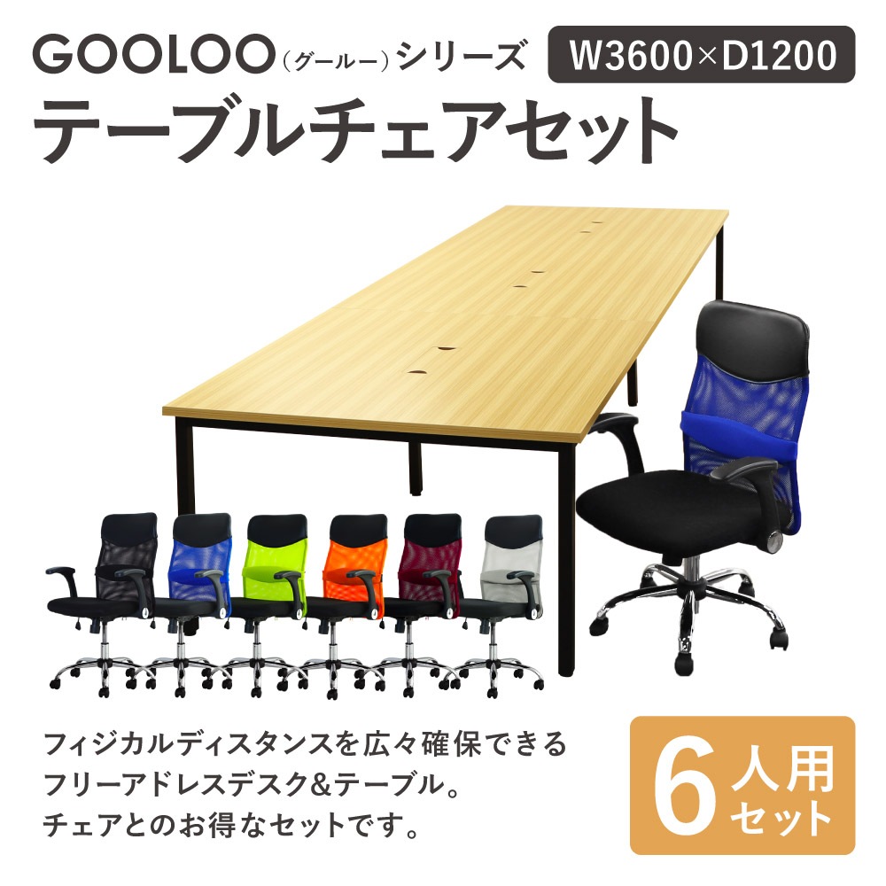 フリーアドレスデスク セット 6人用 幅3600mm オフィスチェア GFA-3612H-S6