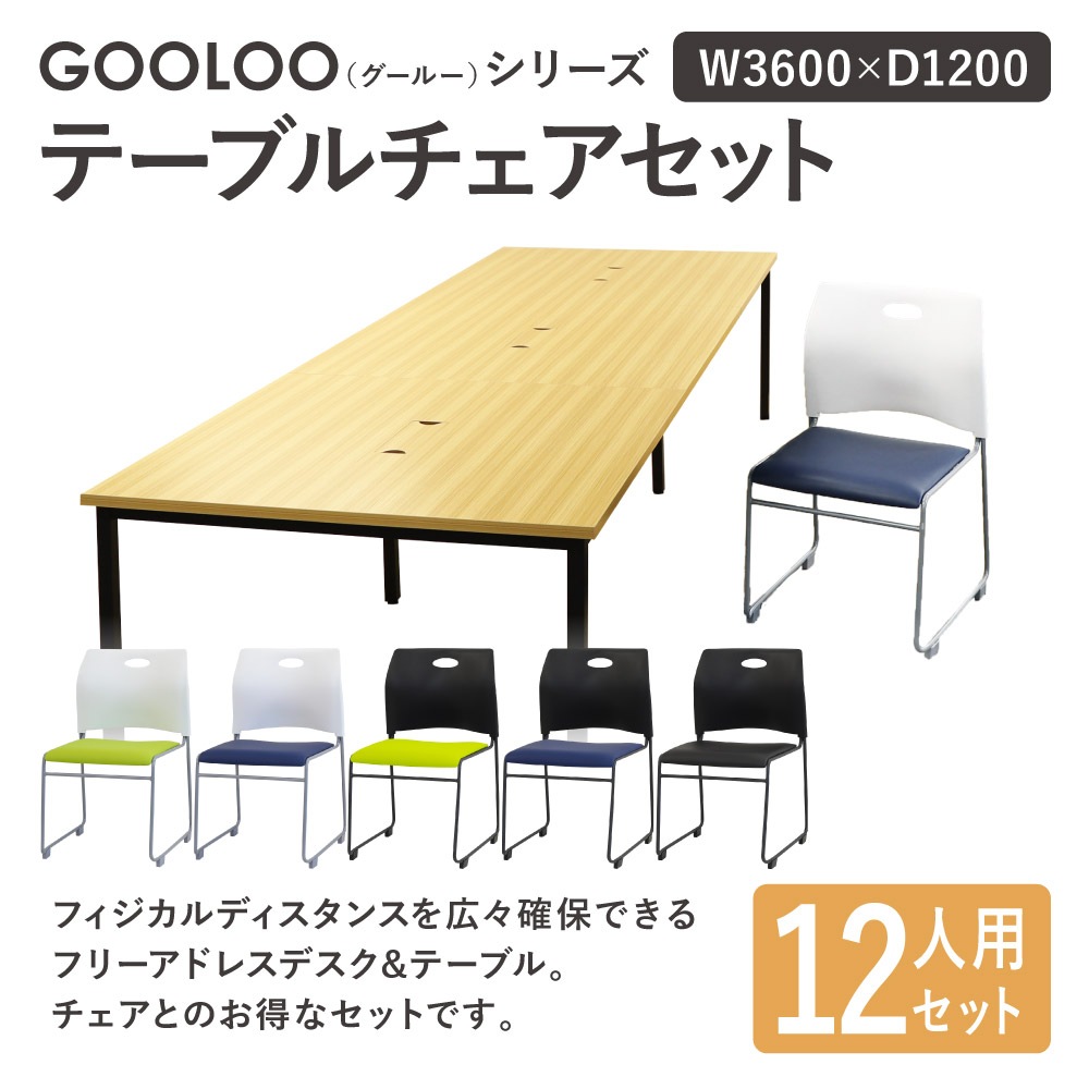 フリーアドレスデスク セット 12人用 幅3600mm スタッキングチェア GFA-3612H-S3