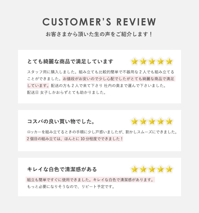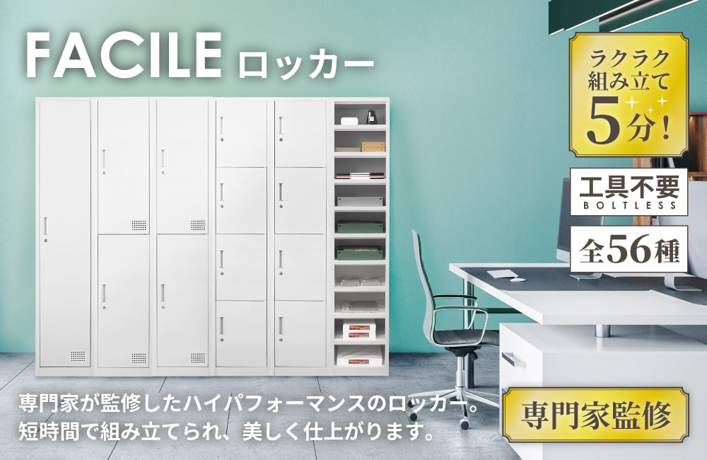 | 工具不要で組み立て簡単!LOOKIT人気NO.1のFACILE(ファシル)シリーズ! すきま収納に便利なオープンタイプのスリムロッカーです。 小さな梱包サイズでこれまで搬入できなかった間口から搬入が可能です。 組立はパーツ同士をはめ込むだけ!女性でも簡単に組立できます。 仕上がりの精度も高く、ぐらつきのないしっかりとしたスチールロッカーが完成します。 ホワイトは見た目にも美しく、明るく清潔感があり、ブラックはシャープで都会的なロッカールームを演出できます。 大量に搬入、設置をする施工業者様に大変ご好評いただいています! |