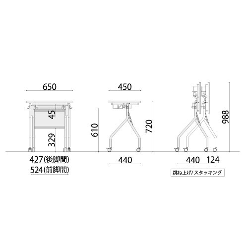 | サイズ | 外寸:幅650×奥行450×高さ720mm 脚間内寸:幅427×奥行440mm |