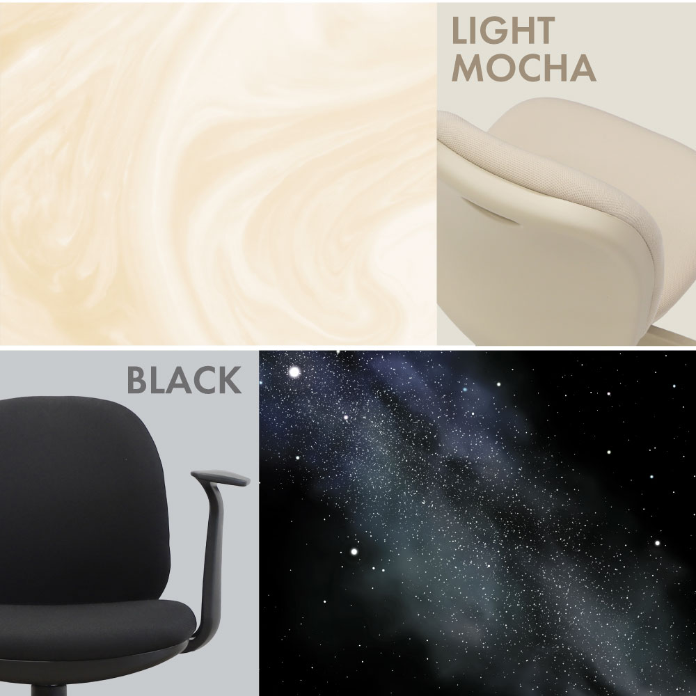 張地:ポリエステル クッション材:ウレタンフォーム 背・座:PP樹脂 キャスター:ナイロン ●ガスシリンダー式昇降機能 |