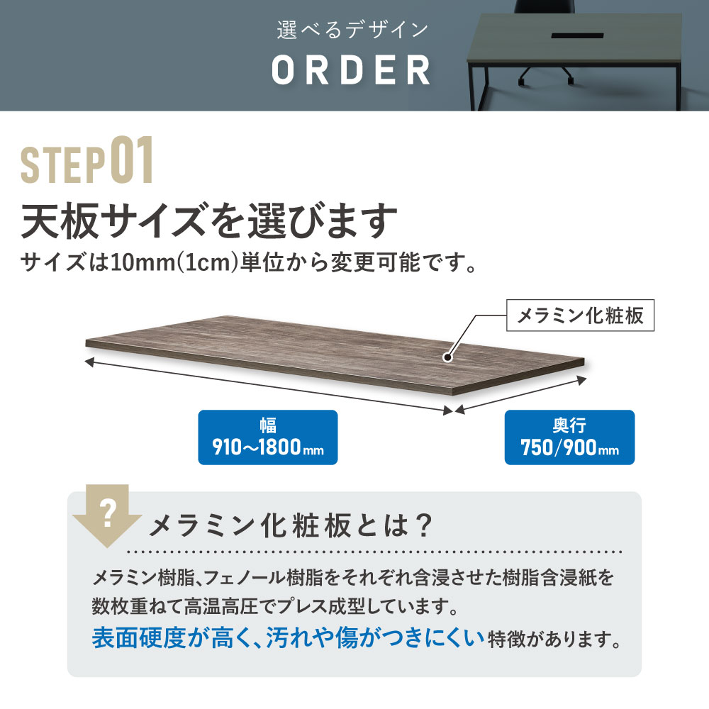 会議用テーブル 角型 幅910~1800×奥行750・900mm オーダーテーブル EK-910-90