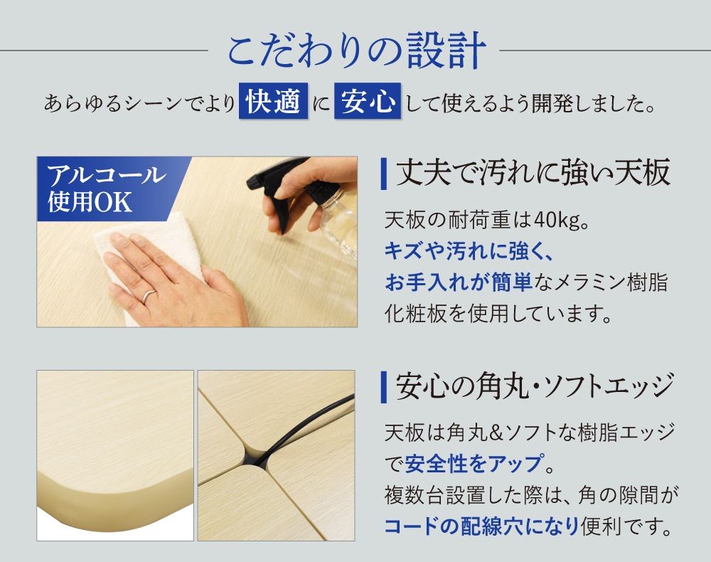 | カラー | ホワイト脚×ホワイト天板、ブラック脚×ナチュラル天板、ブラック脚×ウォールナット天板 |