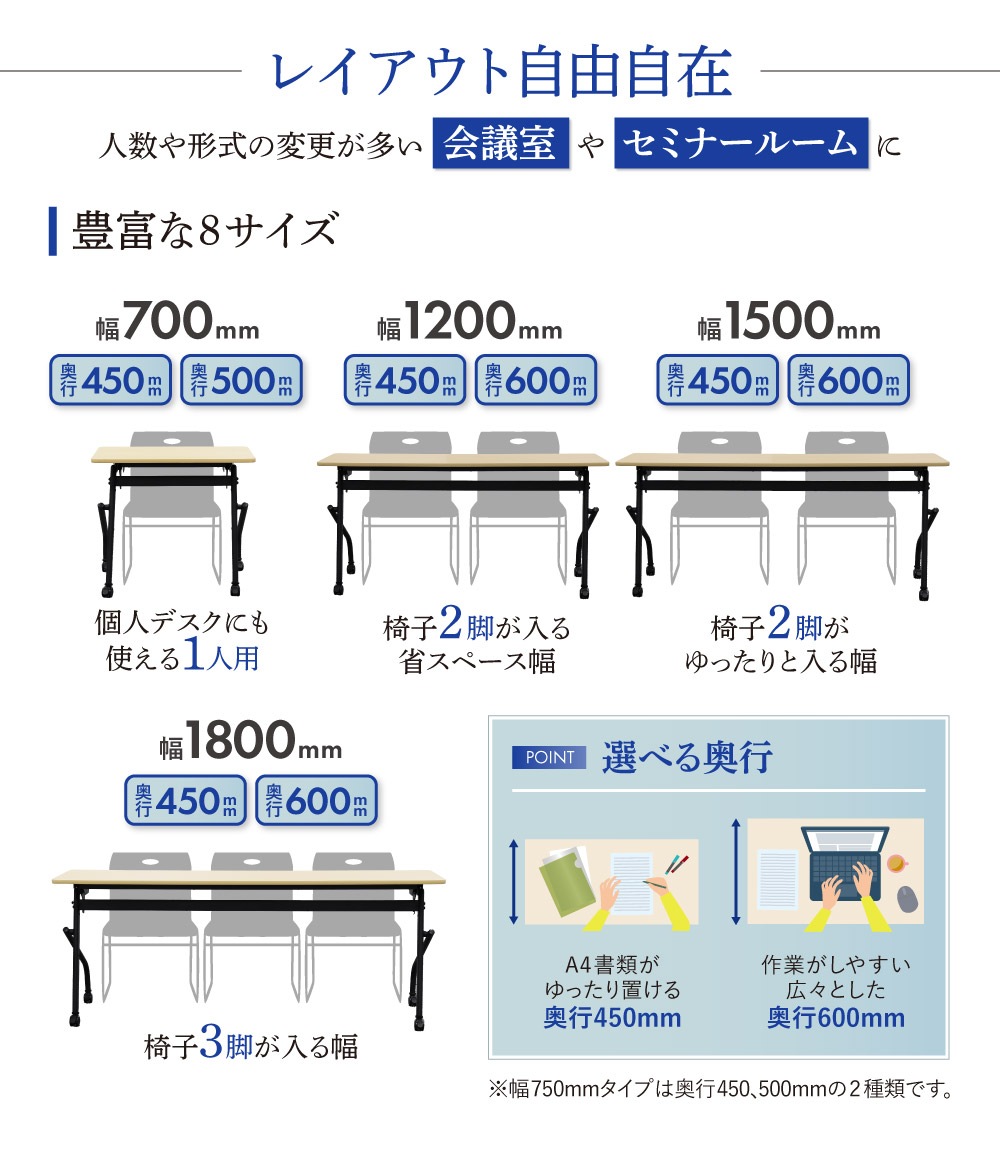 会議用テーブル 幕板付き 幅1500×奥行450mm 平行スタッキング ソフトエッジ巻き HST-1545M