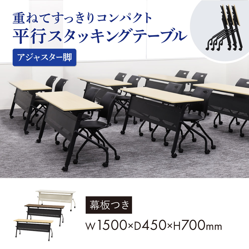 | 商品名 | Whooシリーズ 平行スタッキングテーブル 棚なし 幅1500×奥行450×高さ700mm 幕板付 |
