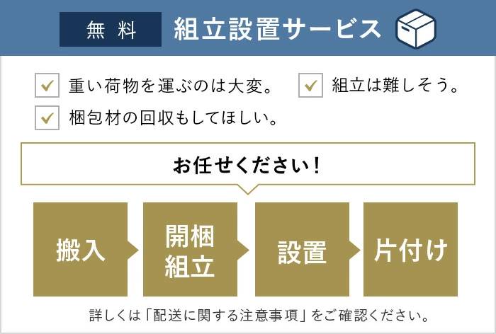 | 配送の注意事項 | ※納期確定後の配送日変更や、不在時は再配送費が発生します。 |