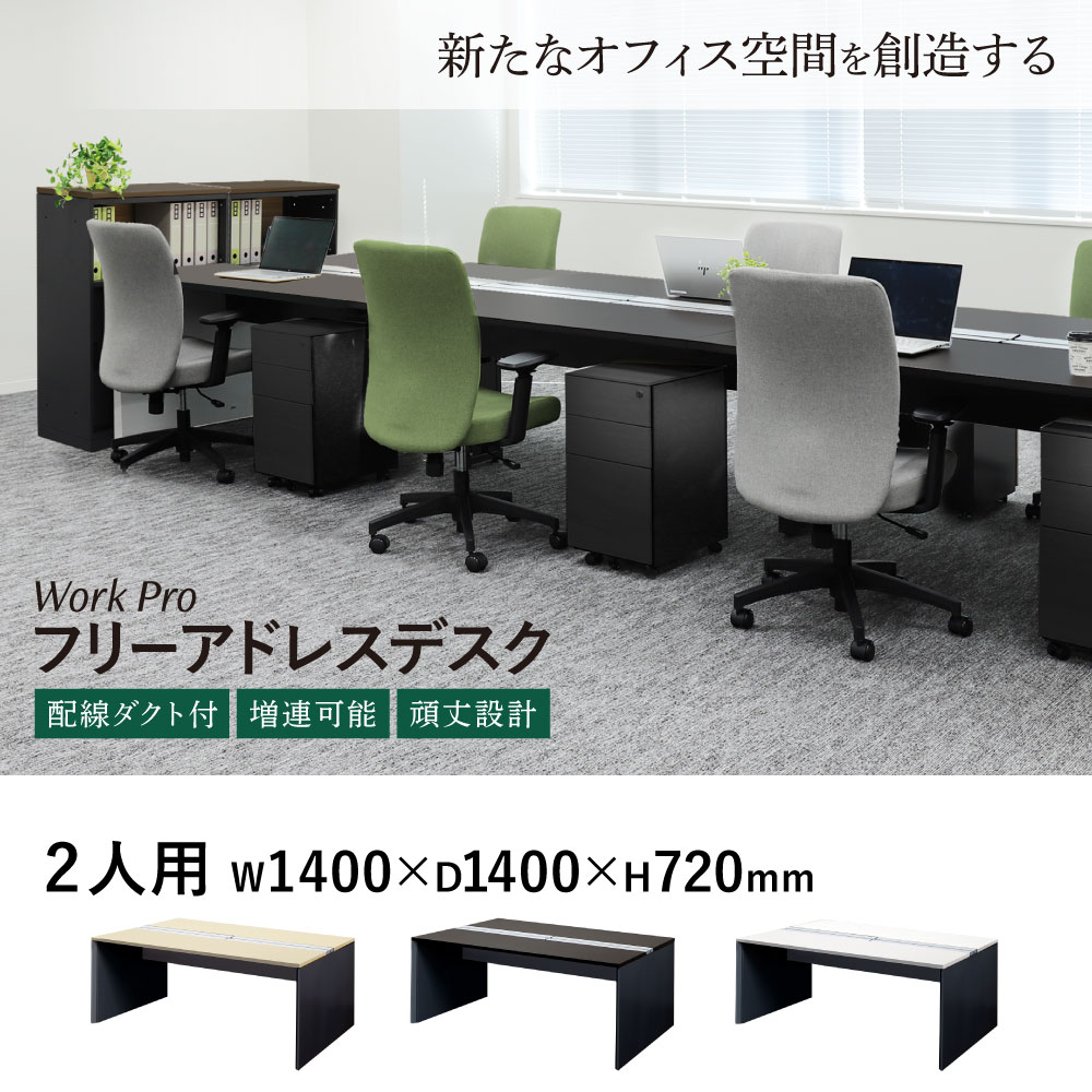 フリーアドレスデスク 2人用 幅1400×奥行1400mm 配線ボックス付き オフィスデスク WPF-1414