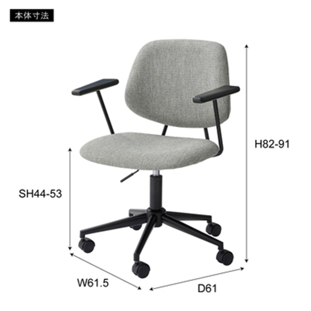 | オフィスや自宅で活躍するデスクチェアです。 肘掛けが身体を支え、快適な座り心地です。 スッキリとしたデザインでさまざまな空間になじみます。 |