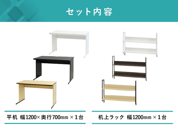 | 商品名 | ワークデスク+机上ラック セット 幅1200mm |
