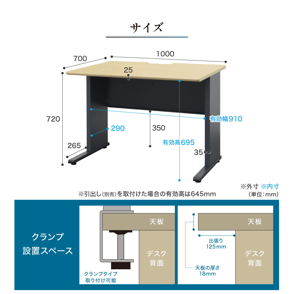 ■デスク 脚:パーチクルボード・スチール(粉体塗装) 天板:表面/合成樹脂化粧板(メラミンエンボス加工)芯材/パーチクルボード エッジ:PVC アジャスター:ABS ●アジャスター付き ●配線トレー付き ■机上ラック 棚板:メラミン樹脂化粧板 エッジ:PVCエッジ フレーム:スチール(粉体塗装) クランプ:スチール(粉体塗装)、合成樹脂 |