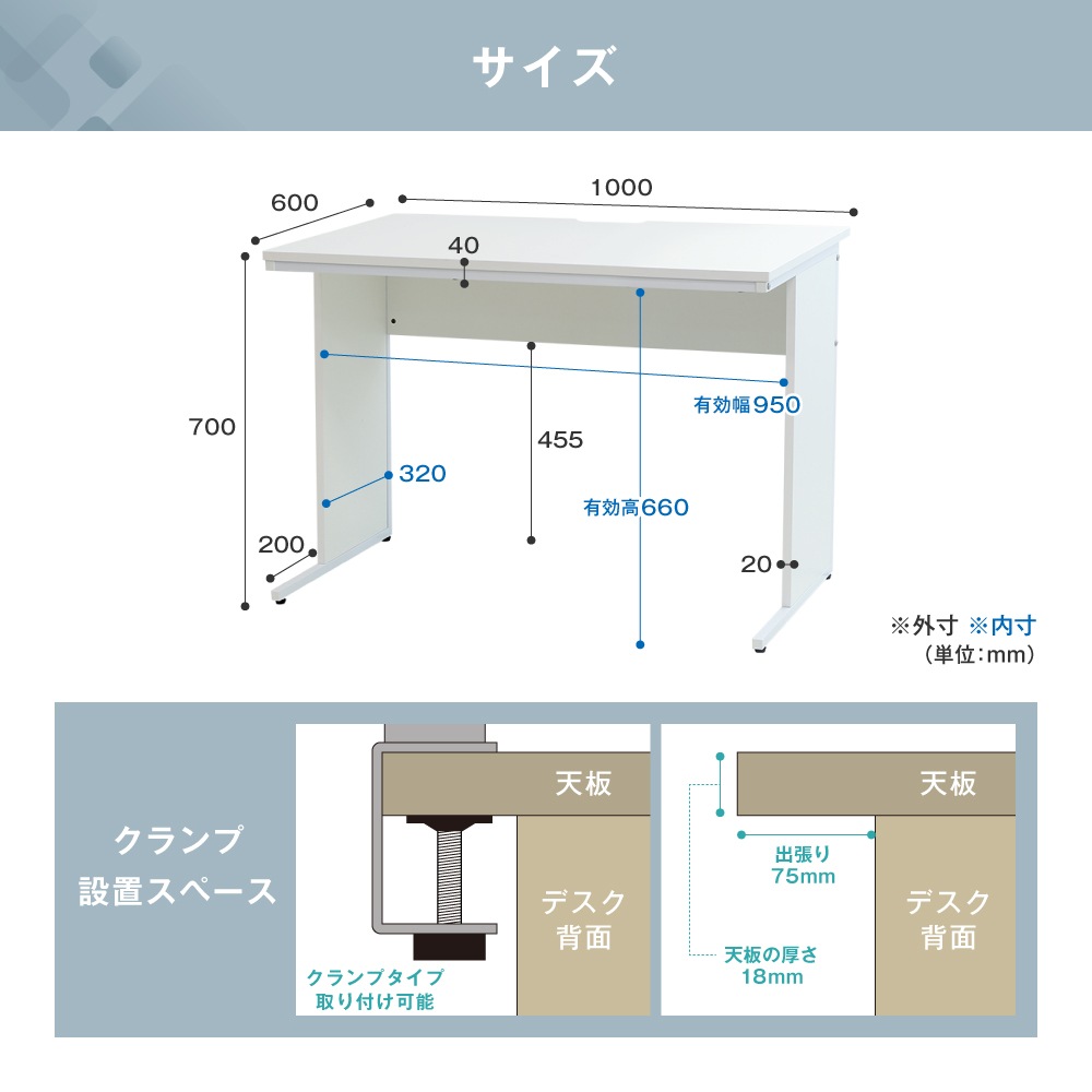 | 商品名 | ワークデスク 幅1000×奥行600mm+ワゴン 幅300×奥行430mm セット |