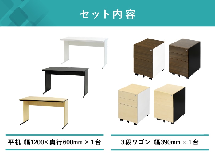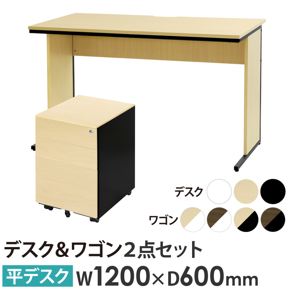 オフィスデスク デスクワゴン セット 幅1200×奥行600×高さ700mm 木目 WDH-1260-EFG2-S3-C