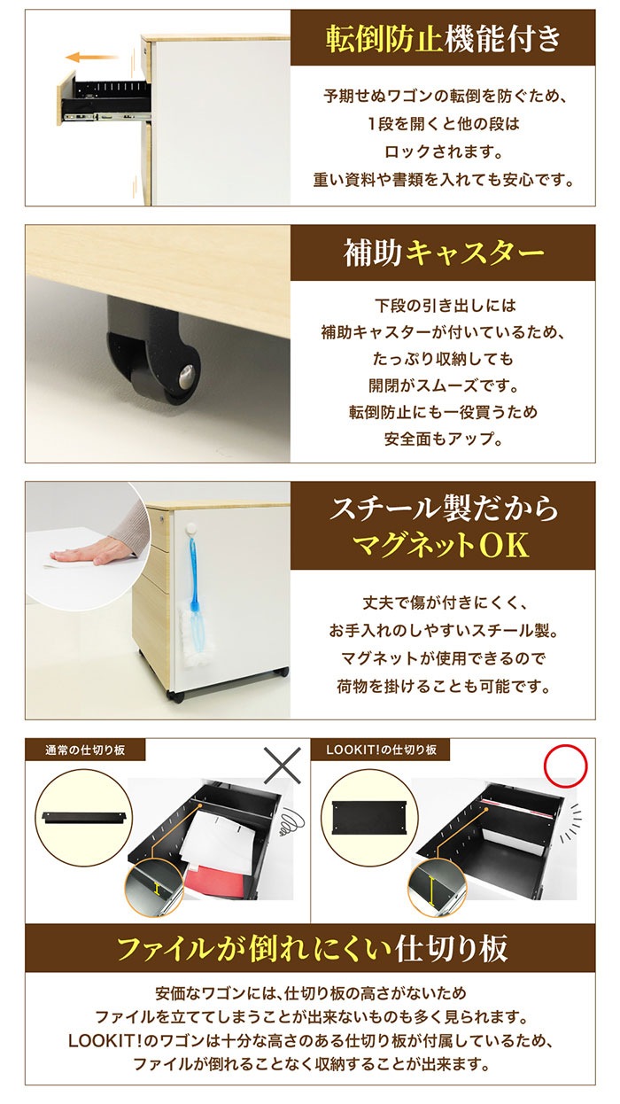 | 付属品 | ■ワゴン 鍵×2、ペントレー、仕切板(下段)×1 |