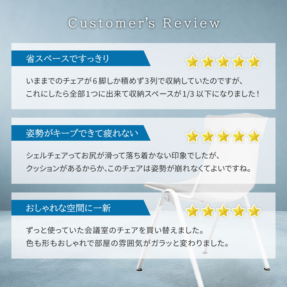| 会議用椅子 会議いす 会議用いす スタックチェア ロビーチェア 作業椅子 積み重ねチェア ファブリックチェア 布張りチェア 肘なしチェア アームレスチェア グループチェア チェアー おしゃれ かっこいい かわいい 北欧 スタイリッシュ 簡単組み立て 青 灰色 積み重ね スタック 重ねる アジャスター 調節 耐荷重136kg 頑丈 丈夫 長持ち 省スペース 軽量 軽い 持ち運び アームレス ファブリック 事務所 学校 スクール 病院 クリニック 福祉施設 介護施設 施設 店舗 ショップ 飲食店 公民館 児童館 塾 休憩室 会議室 セミナールーム 待合室 ロビー エントランス セミナー 集会 食事 打合せ 打ち合わせ ミーティング 待ち合わせ 勉強 学習 レクリエーション イベント L409 L636 MC-161 RFC-FP | |