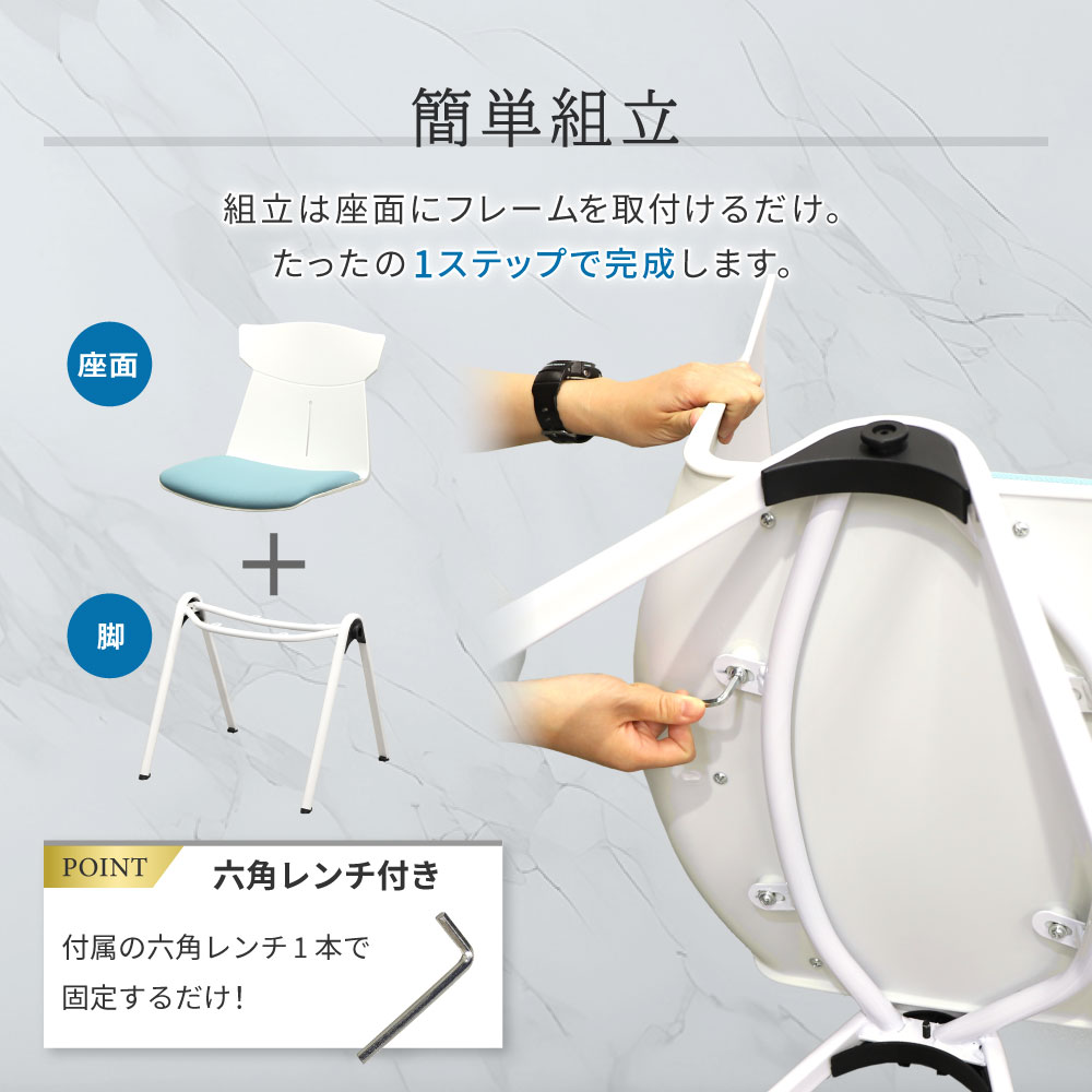 | カラー | 本体:ホワイト 座面:セルリアンブルー、ホエールグレー |