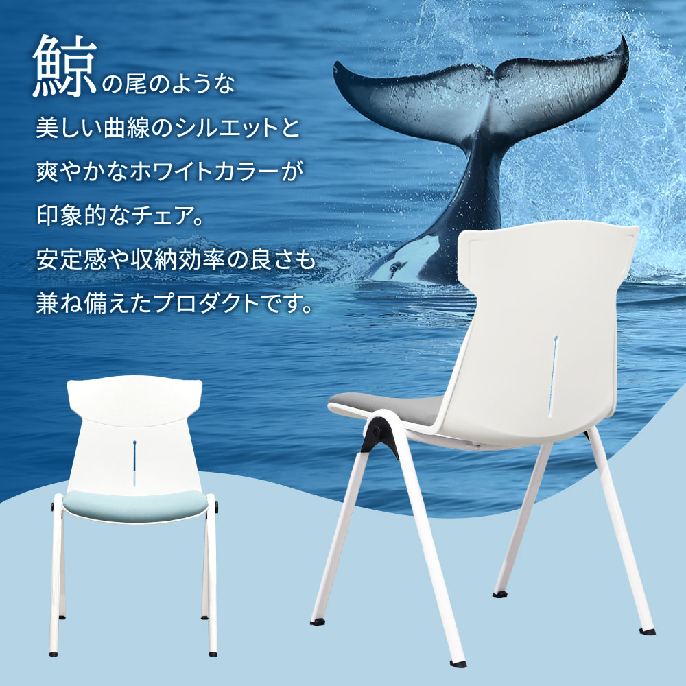 | 鯨のしっぽのような背もたれのホワイトシェルがおしゃれなスタッキングチェア。 一体型成型のため座り心地と洗練されたデザイン性を両立。 左右連結機能付きで横一列綺麗に簡単に並べることができます。 垂直スタッキングで安定感があり、20脚積み重ね可能です。(収納スペース60cm×60cmがあれば20台積み重ね可能) 別売りの専用台車(NF-STC-D)を利用することで移動も簡単に。 |