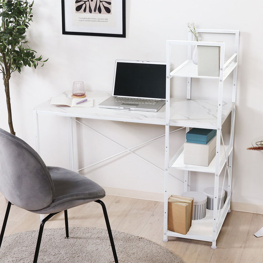 | ラック付きのワークデスクです。 左右を組み換えすることが可能なので、使いやすいようにカスタマイズができます。 アジャスター付きなので、ガタつきの心配もありません。 |