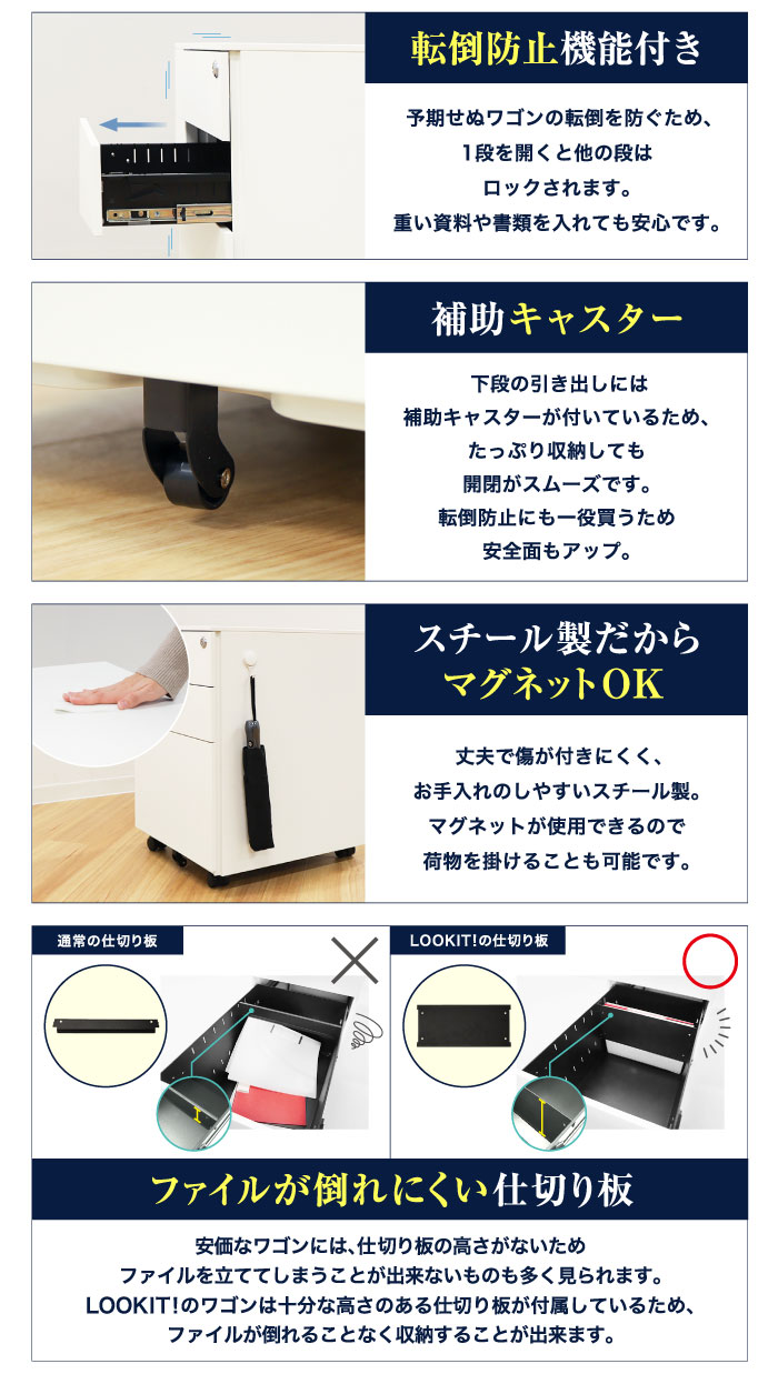 | 付属品 | ■ワゴン 鍵×2、ペントレー、仕切板(下段)×1 |