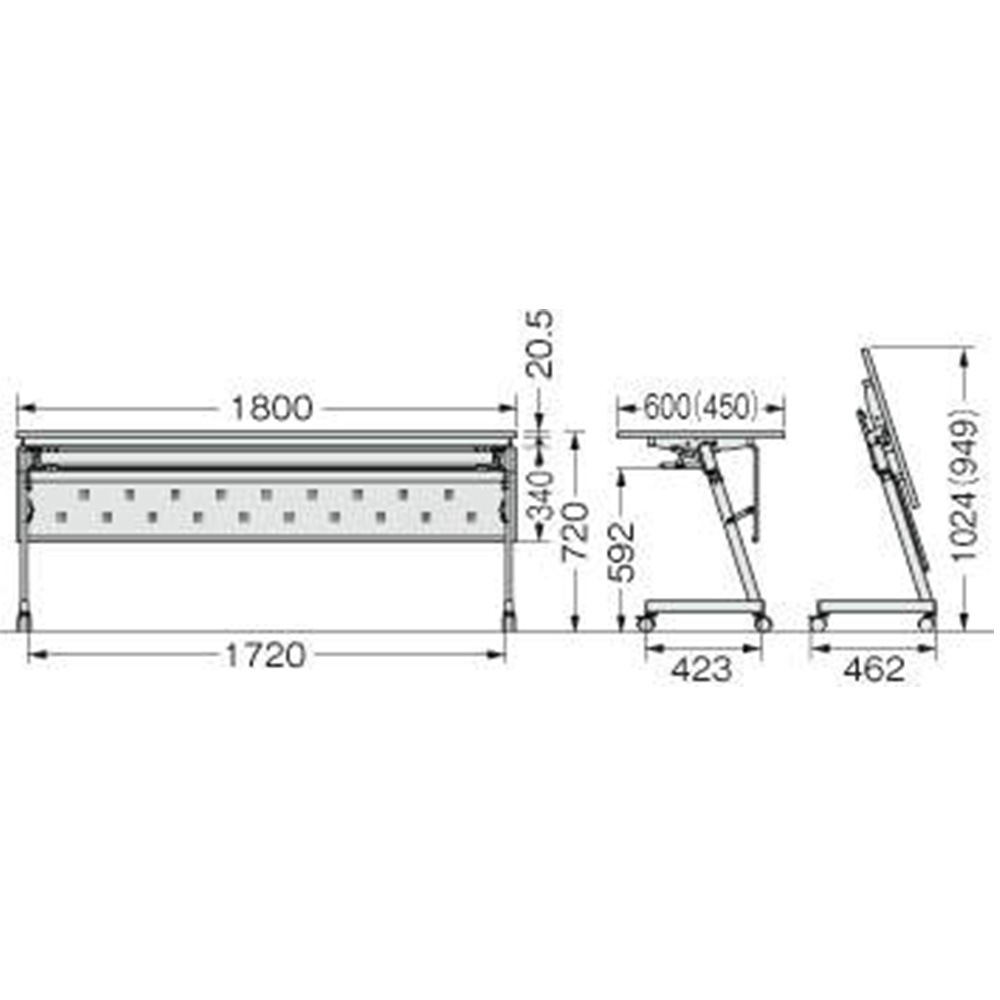 | 商品名 | フォールディングテーブル レクスト 幕板付き 幅1800×奥行450×高さ720mm |