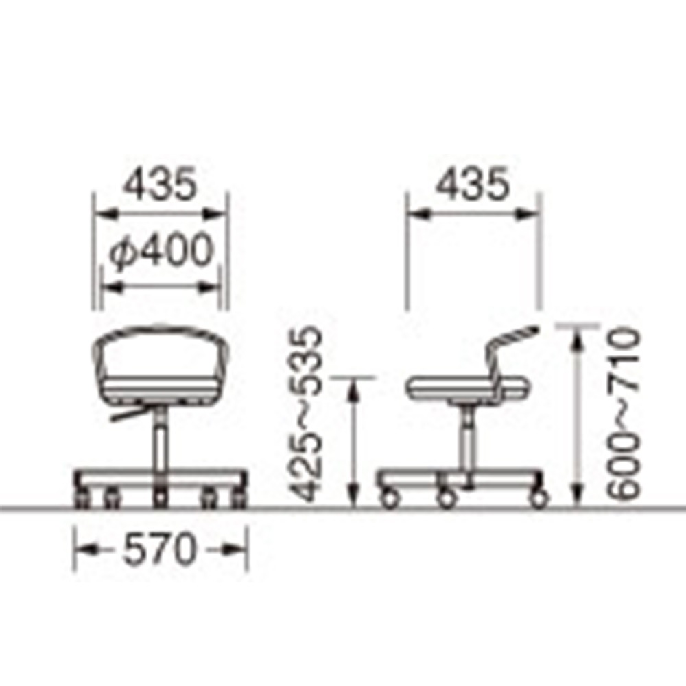 | サイズ | 外寸:幅570×奥行570×高さ600~710(座面高425~535)mm 重量:9.0kg 座面:直径400mm |