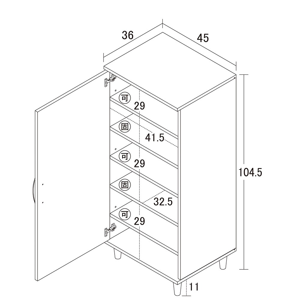 - シューズボックス クロシオ 幅45×奥行36×高さ104.5cm 木製 1ドア 39448