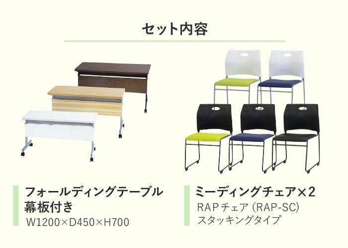 フォールディングテーブル スタッキングチェア セット 2人用 幅1200×奥行450mm 幕板付き 会議用テーブル ミーティングチェア GLF-1245M-Rap-SC2
