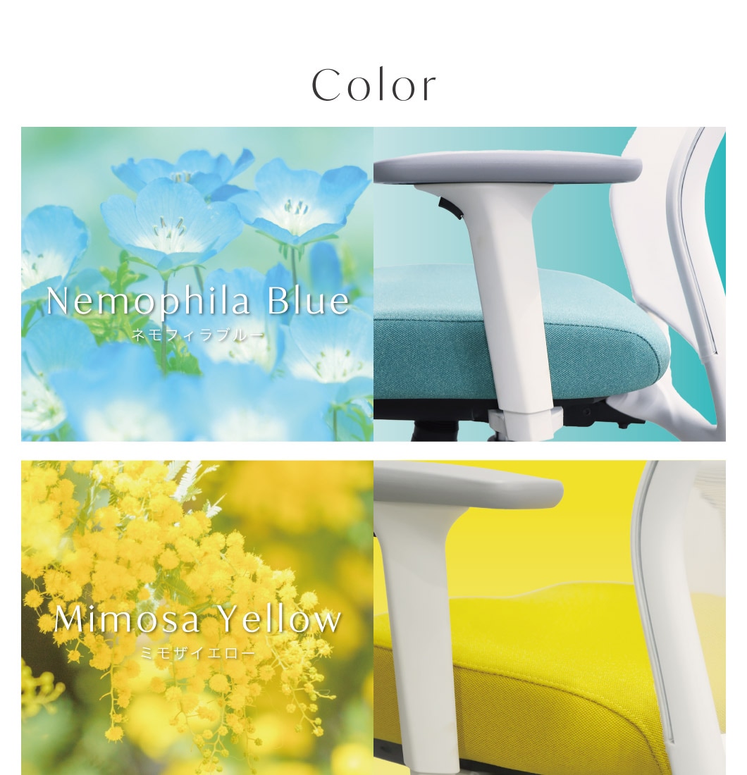 | カラー | フレーム:ホワイト 座面:ネモフィラブルー、ミモザイエロー、ダリアレッド、ストーングレー、スレイトグレー、ナイトブラック |