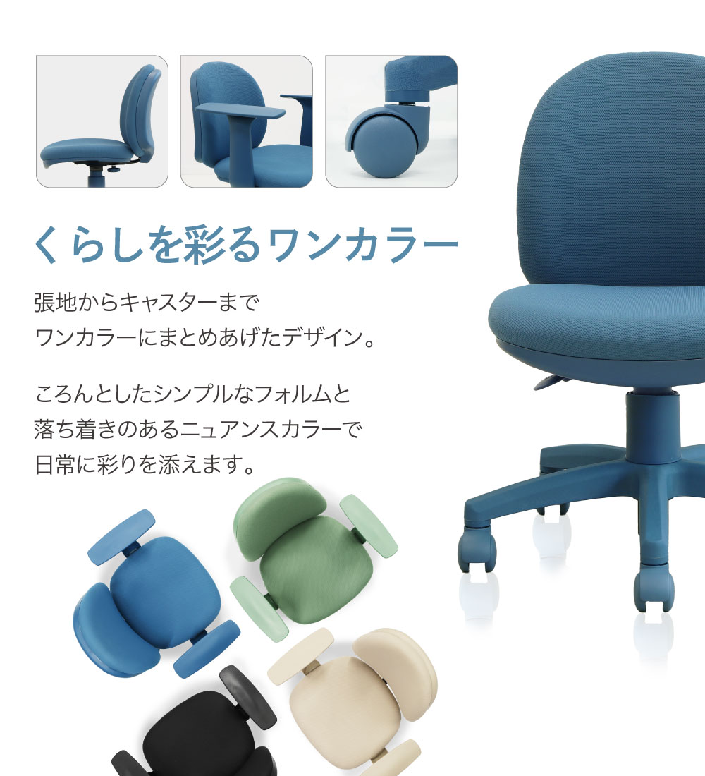 | カラー | ■デスク 本体:ホワイト 袖箱:ホワイト 天板:ホワイト ■チェア ブラック、オーシャンブルー、オリーブ、ライトモカ |