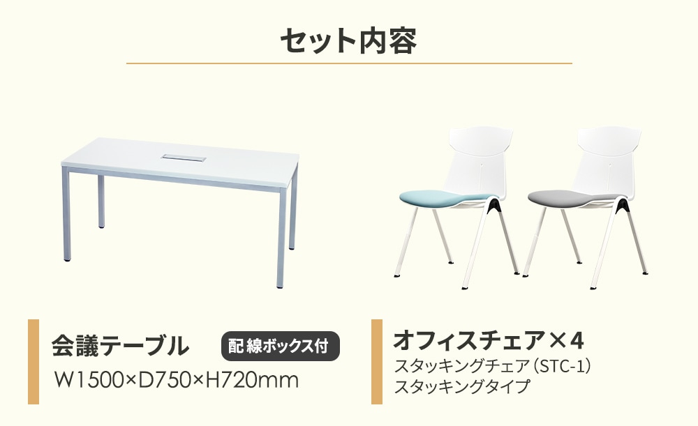 | 商品名 | 会議テーブル 幅1500mm スタッキングチェア 4人用セット |