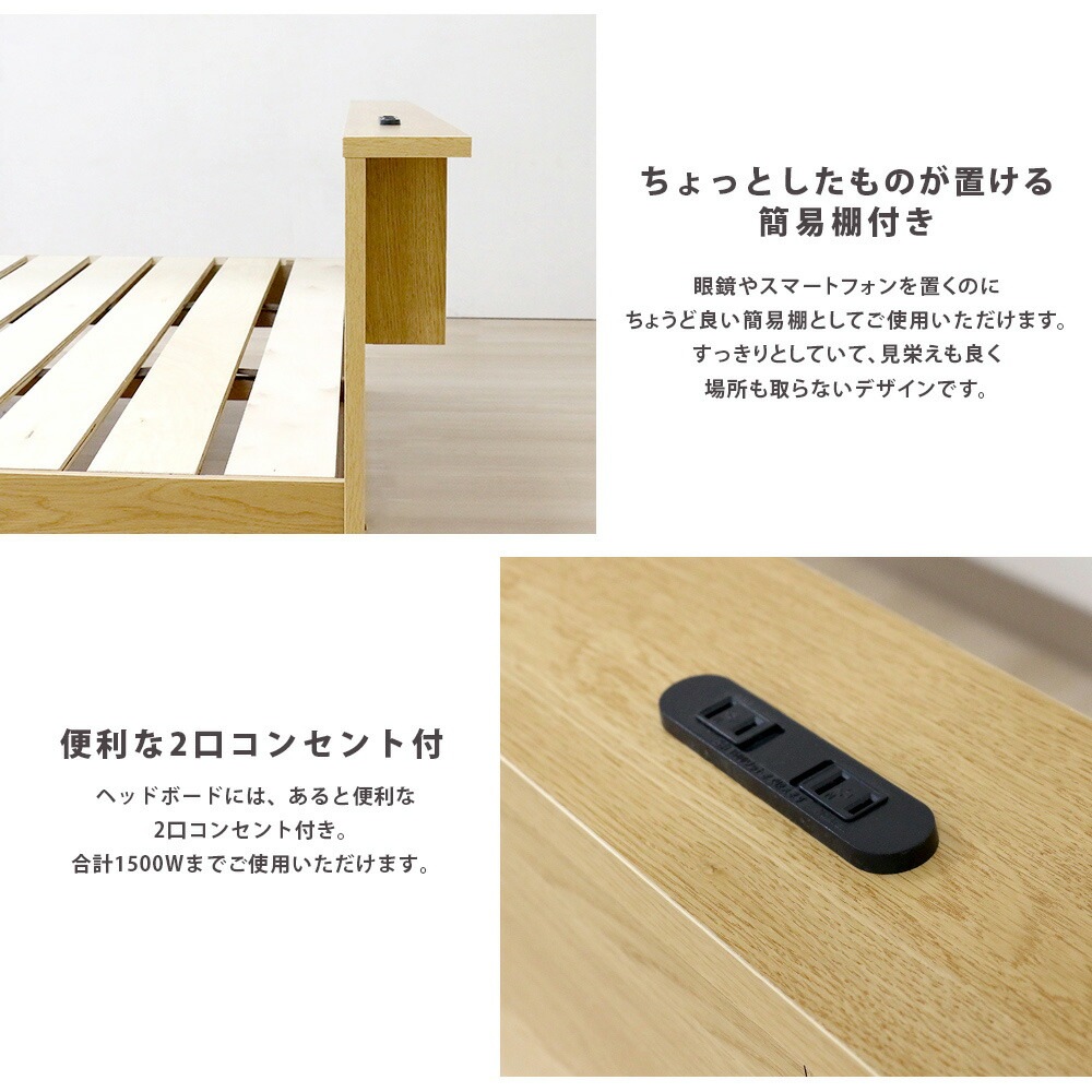 | デザインベッド 天然すのこベッド 木製フレームベッド ヘッドボード付き 棚付きベッド コンセント 2口コンセント 木 リラックス 安眠 モダン 収納スペース 簡易棚 1人暮らし ワンルーム 引っ越し 寮 部屋 快適 | |