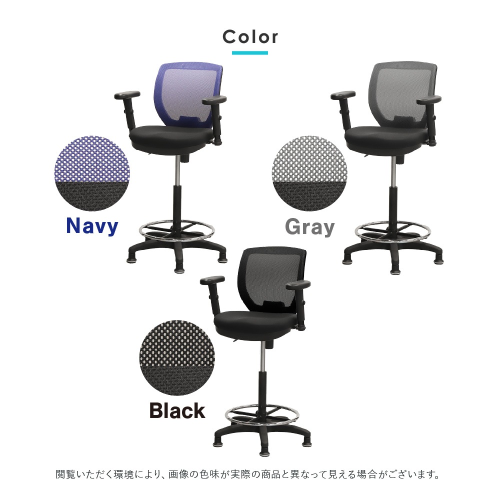 | カラー | 背もたれ:ネイビー、グレー、ブラック 座面:ブラック |