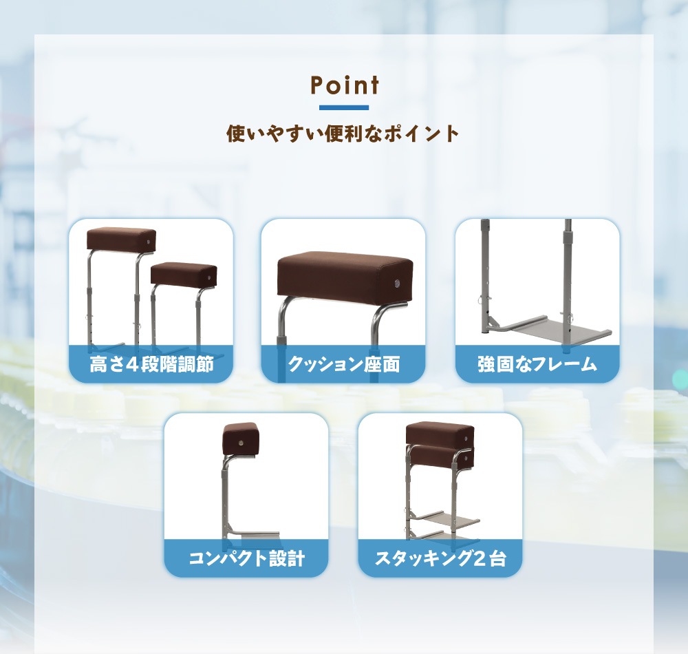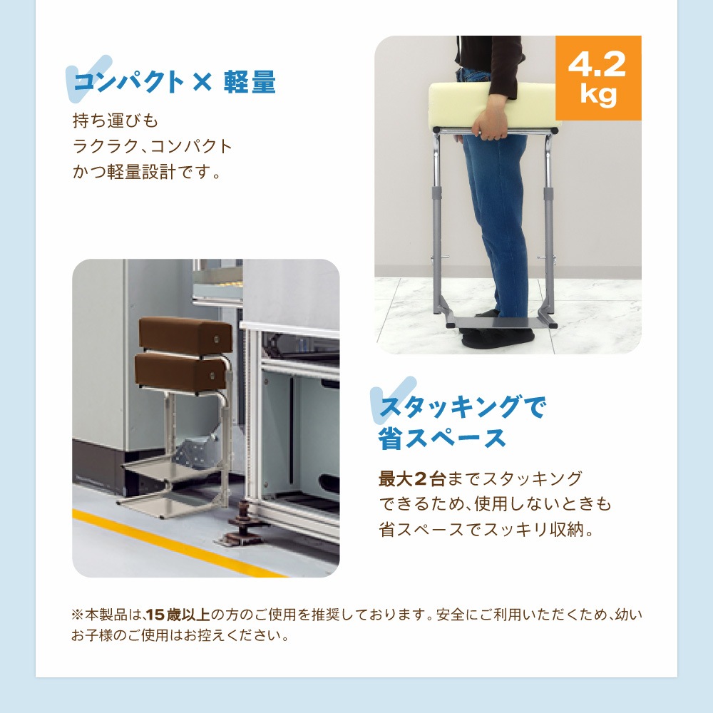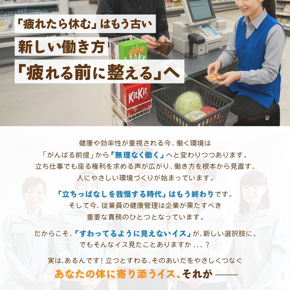 | ワーキングチェア スリム 軽い 持ち運び 移動 省スペース 寄りかかる 寄りかかれる 2WAY 高さ 4段階 調節 調整 昇降式 昇降 業務用 オフィス 店舗 飲食店 レジ打ち 工場 ライン作業 立ったまま 座れる 立ち仕事椅子 レジ椅子 デスクワーク スタンディングワーク スタンディングデスク スタンディングサポートスツール 立ち作業椅子 立ち作業補助 立ち椅子 サポート椅子 ちょい掛け椅子 ちょいがけ椅子 ちょい掛けチェア スタンバイチェア 作業用椅子 作業チェア 接客椅子 接客チェア 座って働く ちょい掛けして働ける 膝痛 関節痛 足が痛い むくみ むくむ 立ちっぱなし 立ち作業 長時間 楽 青 茶色 白 黒 | |