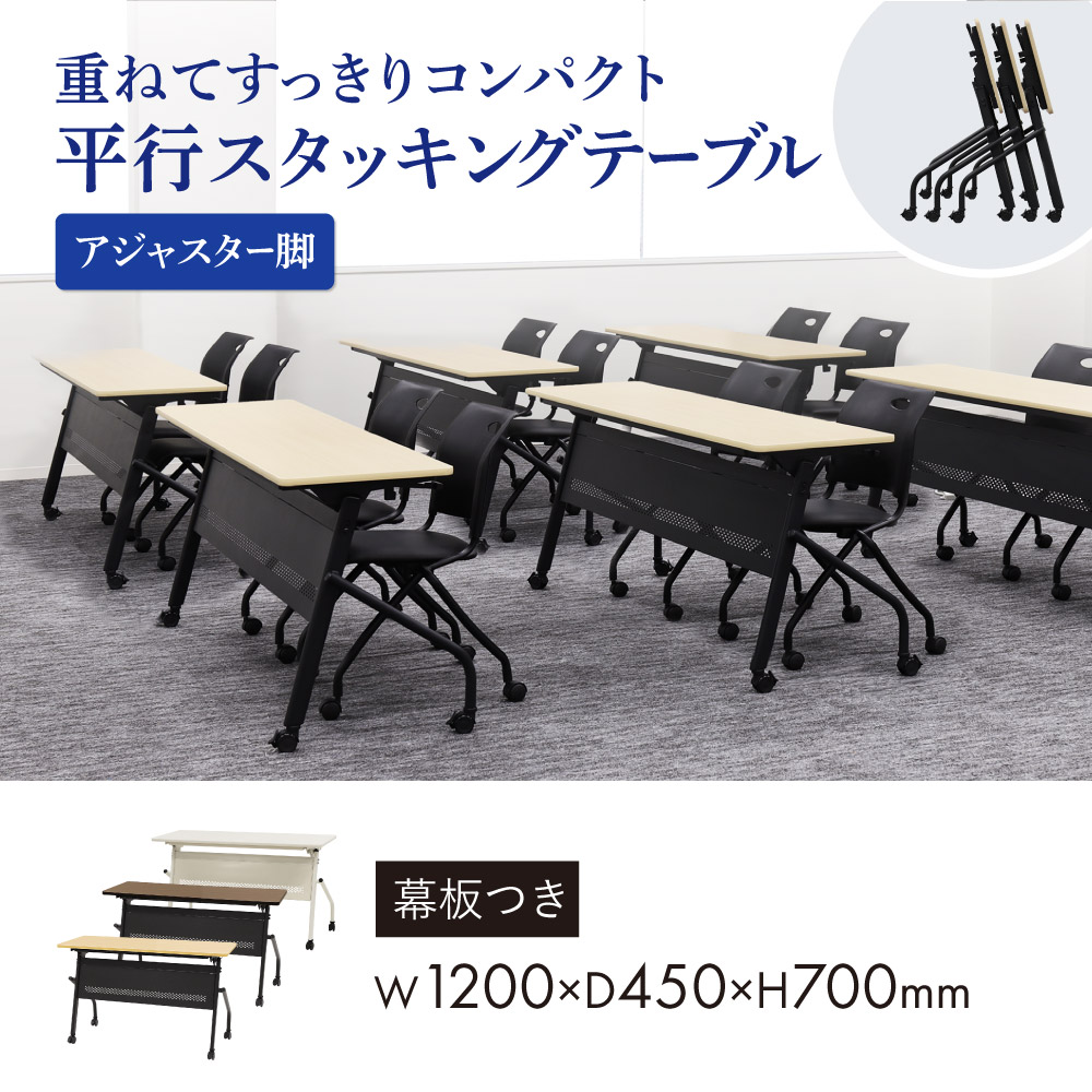 | 商品名 | Whooシリーズ 平行スタッキングテーブル 棚なし 幅1200×奥行450×高さ700mm 幕板付 倉庫受取限定 |