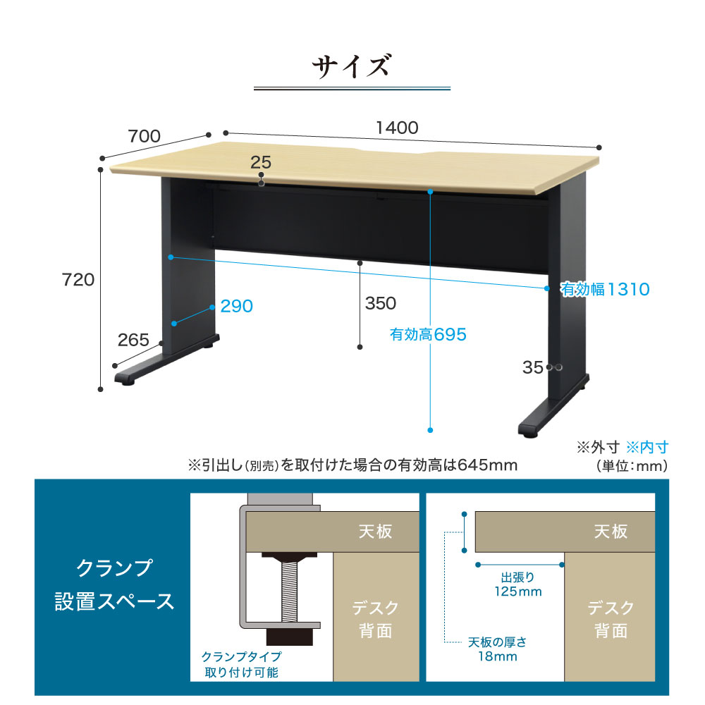 | サイズ | 外寸:幅1400×奥行700×高さ720mm |