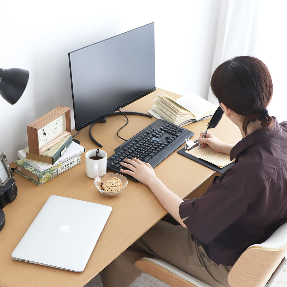 | すっきりとしたシルエットで、空間を選ばず使いやすいデスクです。 机の上にものが増えてしまう方や、綺麗に保ちたい方におすすめです。 ちょうどいい広さと設計でストレスなく使えます。 デザインと実用性のバランスが兼ね備えた、毎日使いたくなる1台です。 |