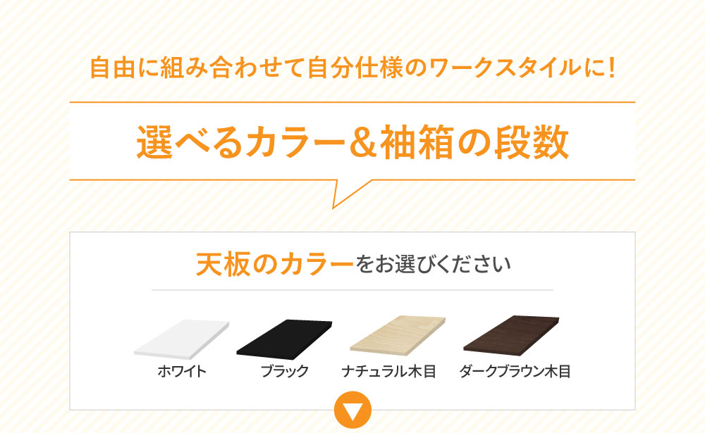 | カラー | 本体・袖箱:ブラック 天板:ホワイト、ブラック、ダークブラウン(木目調) |