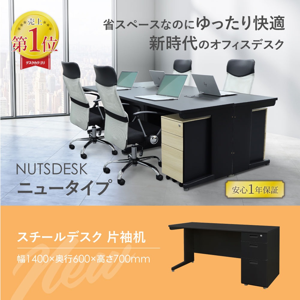 | 商品名 | NUTS(ナッツ)デスク ブラック 片袖机 スリム 幅1400mm 倉庫受取限定 |