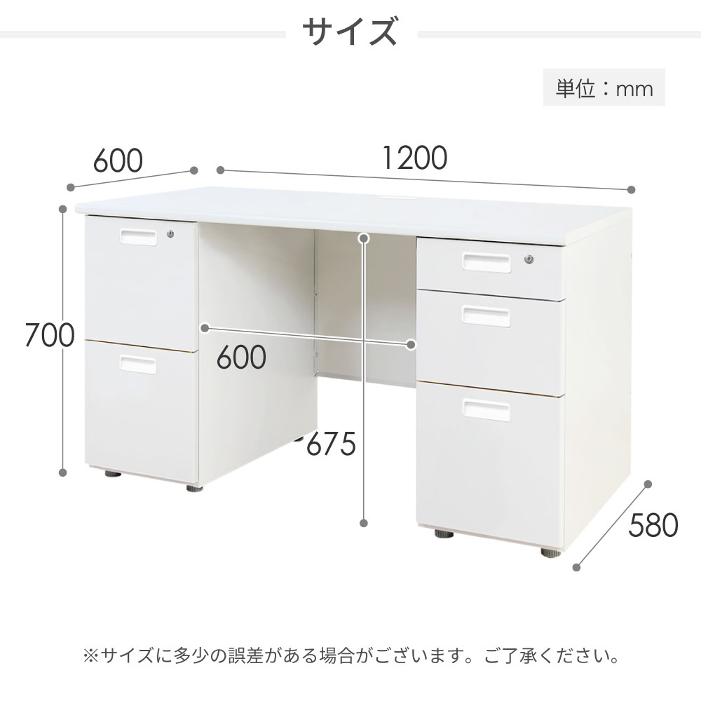 - 【倉庫受取限定】 オフィスデスク 両袖机 本体ホワイト 袖箱 木目 LRD-126-C-SO
