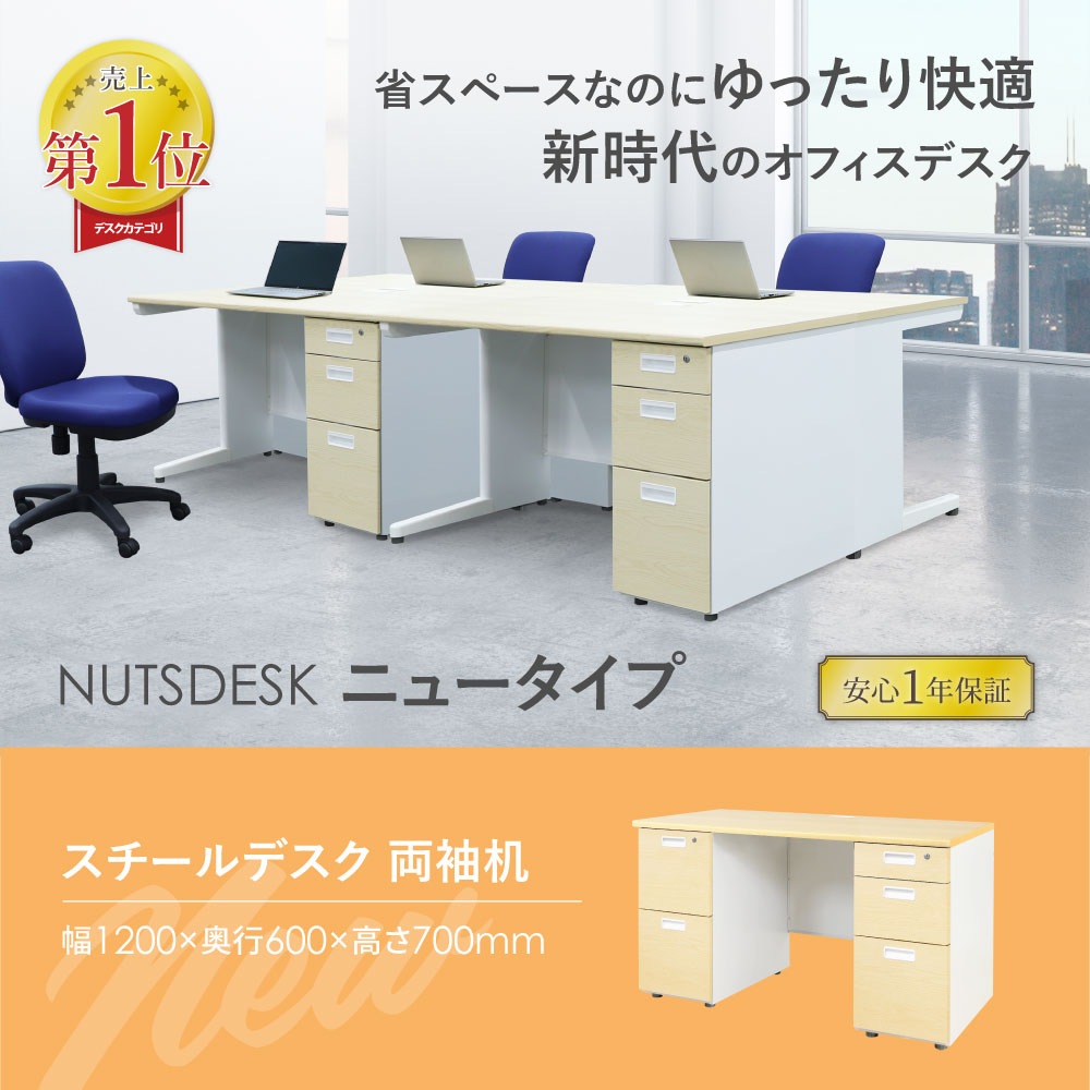 | 商品名 | NUTS(ナッツ)デスク ホワイト×木目 両袖机 スリム 幅1200mm 倉庫受取限定 |